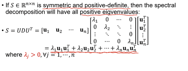 이므로, positive-semi-definite하다. 따라서, Eigenvaluees in 는 모두 positive하다.